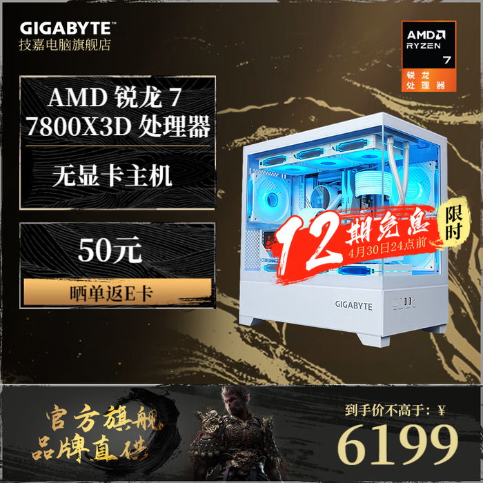 技嘉配四R7 7800X3D核显装京东促销6199元
