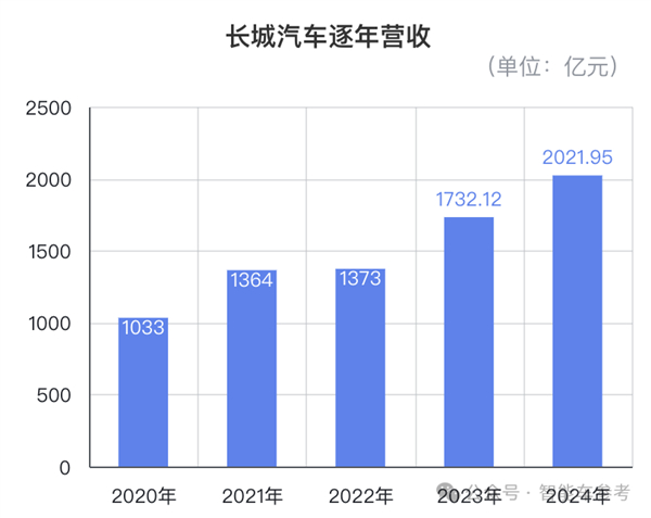 整个2024年,长城汽车实现营业收入2021.95亿元,同比增长16.73%: