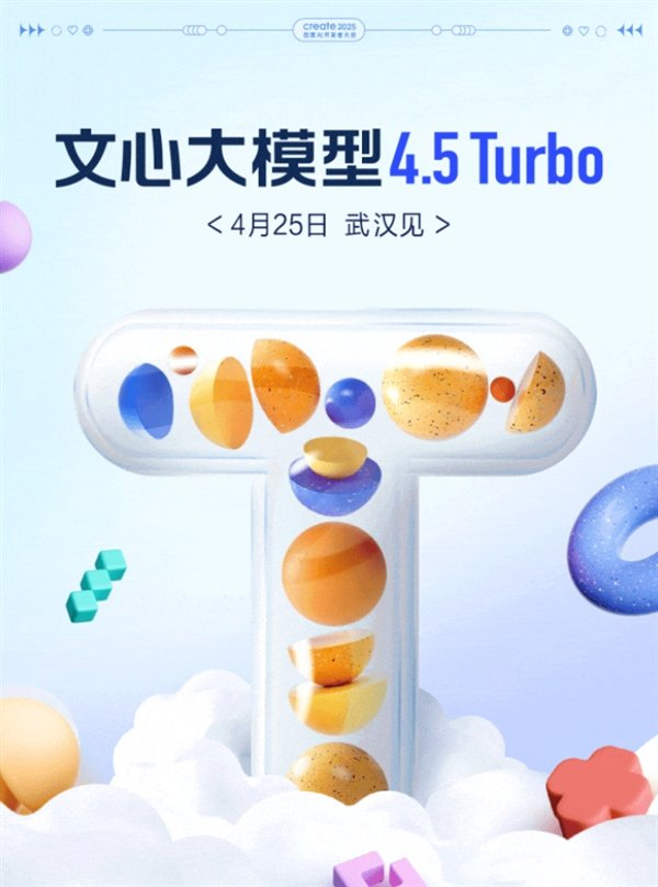 快科技4月10日消息,百度官方今天正式宣布,文心大模型4.5Turbo将在将于4月25日的Create大会上亮相。