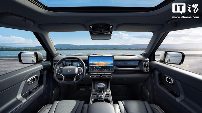 座舱方面,该车预计将配备 10.25 英寸液晶仪表及 15.6 英寸悬浮式中控屏,匹配上下平底式方向盘、电子换挡杆。奇瑞透露山海 T1 四驱版相比两驱版车型将提供更多驾驶模式选择。