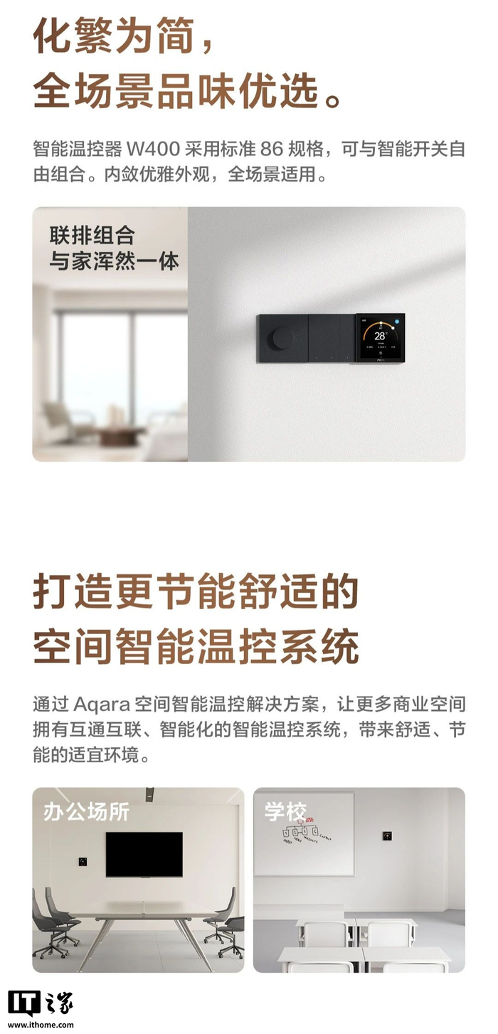 绿米 Aqara 智能温控器 W400 开售:三合一设备接入、双协议支持,1299 元