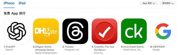 DHgate一跃成为了美区App Store排名第二的免费iPhone应用程序,仅次于ChatGPT。