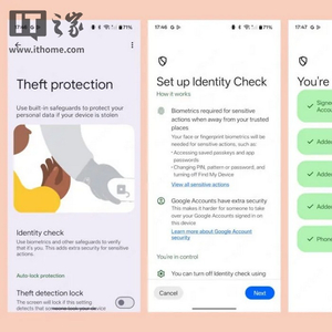 IT之家 4 月 16 日消息,谷歌于 2024 年 12 月在其 Pixel 系列手机上通过 Pixel Feature Drop 首次推出了“身份检查”(Identity Check)这一防盗窃安全功能。随后,三星迅速跟进,将其整合到了基于 Android 15 的 One UI 7 中。对于其他安卓设备而言,这一功能将随 Android 16 更新一同推出。