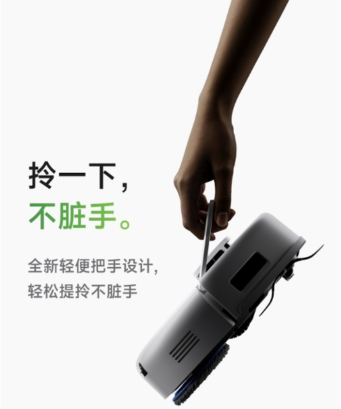 地宝mini还有着独具一格的轻便把手设计,随手一拎即可去到任何想让它清洁的地方,完全不会弄脏手,对于LOFT户型的用户十分友好。