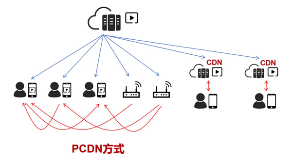 比如某视频网站把视频放在一个PCDN设备上,这样其他用户通过访问这个设备,就可以看到对应的视频,从而节省这个网站自己服务器的带宽。