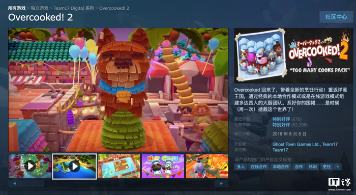 Steam 国区 24.5 元,合家欢游戏《胡闹厨房 2》迎 2.5 折史低折扣