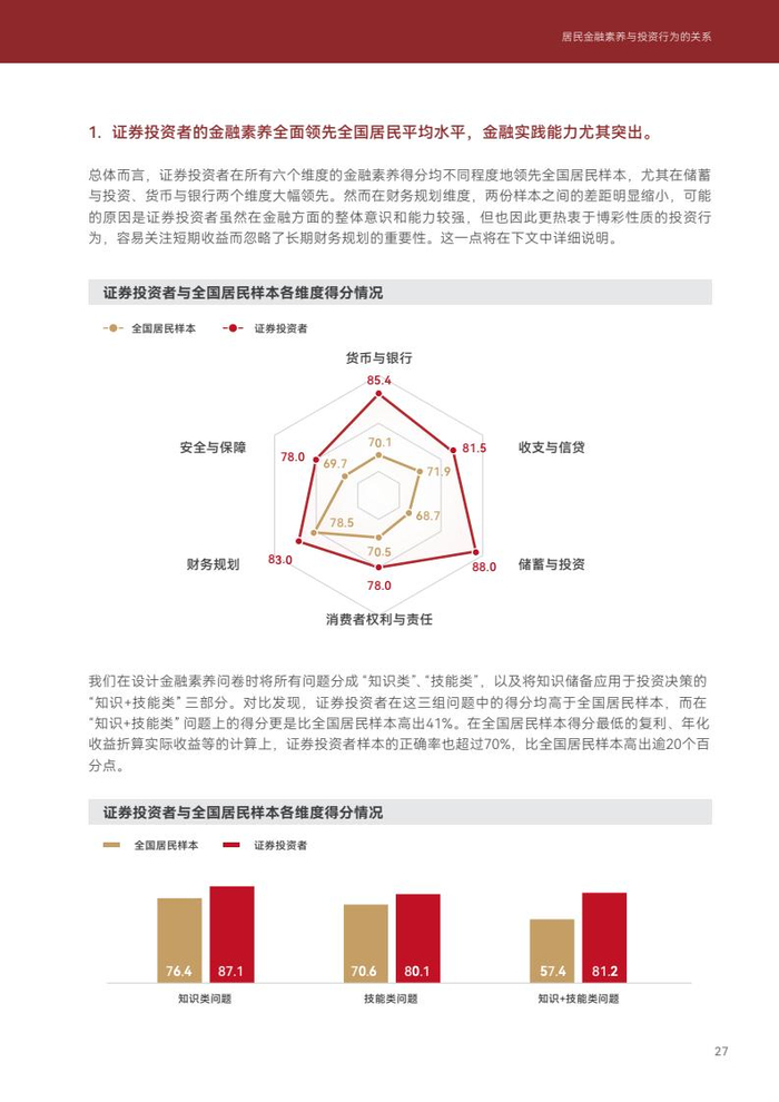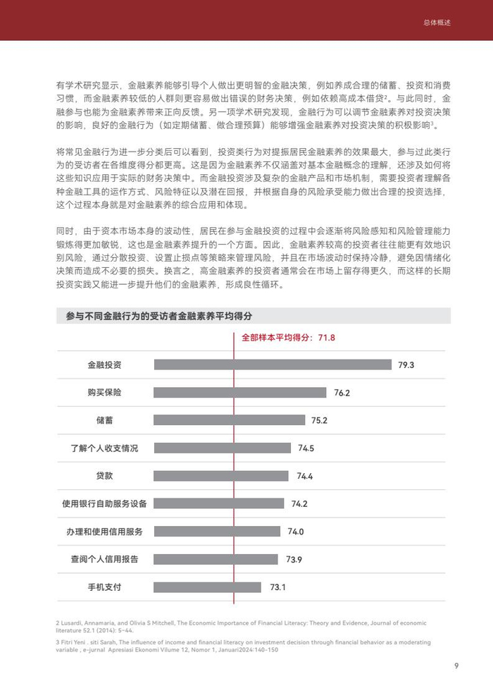 常见金融行为的参与度逐年提高, 有金融投资经验的居民各维度金融素养均高于全国平均水平。