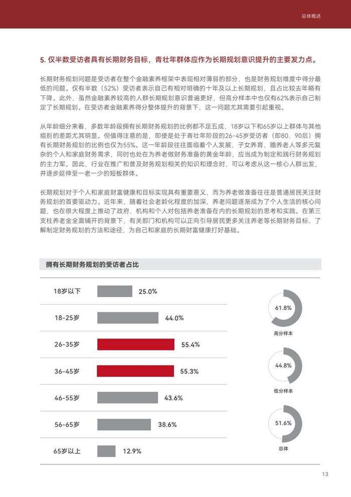 仅半数受访者具有长期财务目标,青壮年群体应作为长期规划意识提升的主要发力点。