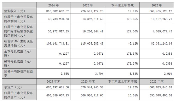 2024年度,深圳中恒华发股份有限公司实现营业收入8.17亿元,较去年同期增加12.41%;利润总额4051.82万元,较去年同期增长119.85%;净利润3673.83万元,较去年同期增长175.35%。