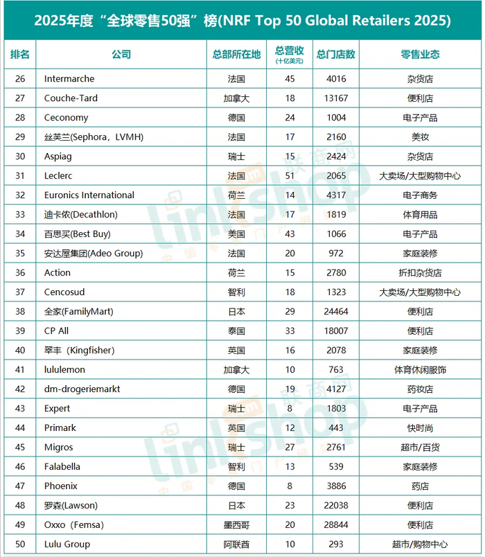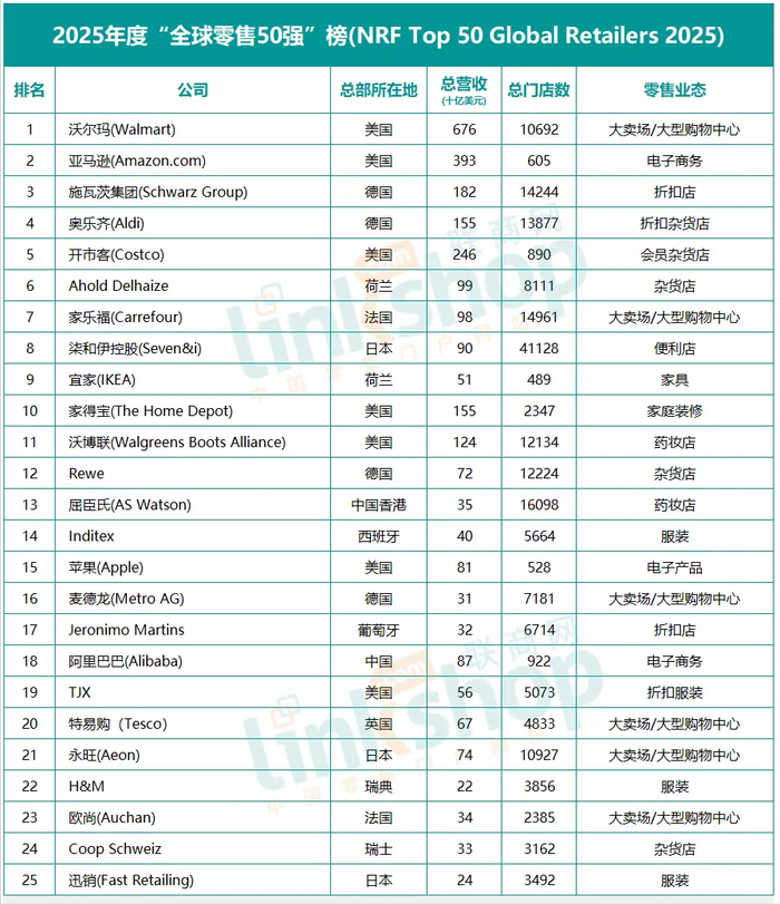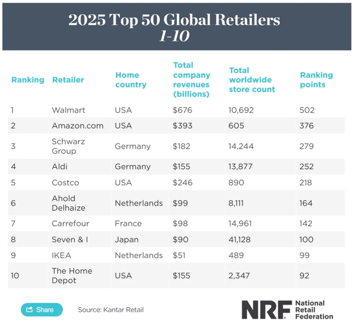 2025年全球零售50强出炉 中国有哪些上榜?
