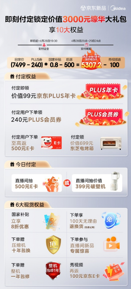 美的新品餐边柜冰箱正在京东火热预售中,咨询客服即可锁定包括京东PLUS年卡、240元PLUS超级补贴、价值699元的东芝烤箱、付尾款立减240元等价值3000元的超值权益,叠加补贴到手价相当于5499.2元。感兴趣的用户不妨现在就打开京东APP搜索“美的餐边柜冰箱”,提前锁定优惠权益。