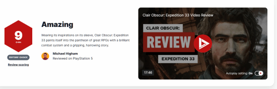 《光与影:33号远征队》IGN 9分:成功跻身伟大RPG游戏殿堂
