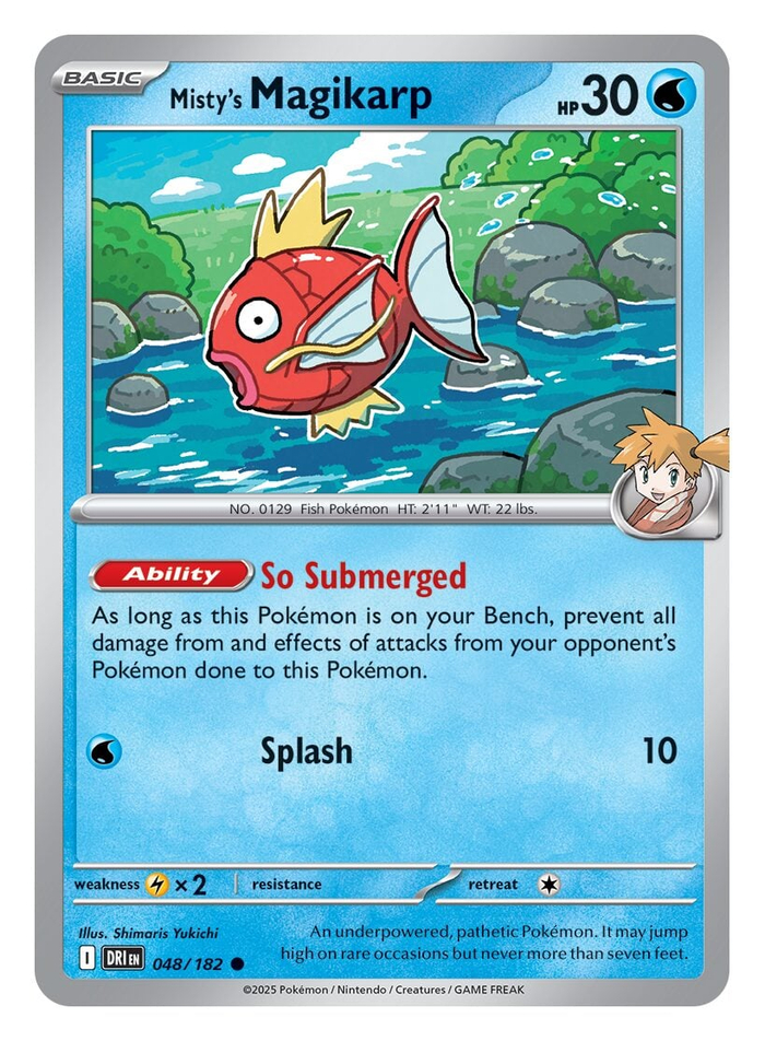 她最后一次和宝可梦一起出现在 2002 年,将会在 2025 年 5 月 30 日发布的《宿命对手》扩展包中回归,粉丝有机会收集小霞的可达鸭(Misty’s Psyduck)、小霞的海星星(Misty's Staryu)、小霞的宝石海星(Misty’s Starmie)和小霞的鲤鱼王(Misty's Magikarp)。