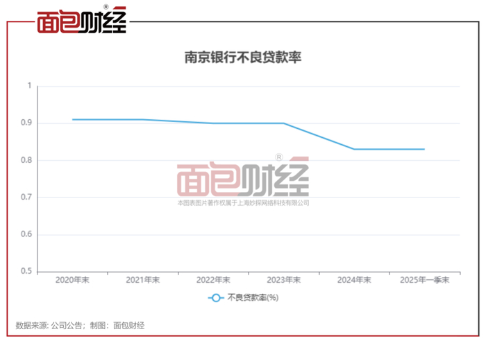 截至2025年一季末,南京银行不良贷款率0.83%,与2024年末持平;拨备覆盖率323.69%,虽较上年末下降11.58个百分点,但风险抵补能力仍处于较高水平。