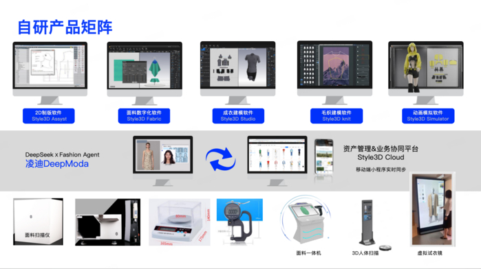 2025年3月,凌迪科技Style3D推出服装行业智能底座“DeepModa”,骨架是凌迪科技的全产业链工具箱,神经是如DeepSeek等开源大模型的推理能力,肌肉是Style3D构建的数字资产,包括超230万种面料,超120万种款式设计,覆盖服装设计个维度。