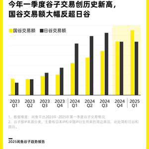 4月24日,闲鱼发布《2025闲鱼谷子趋势报告》,数据显示,今年一季度,闲鱼谷子交易额创历史新高,“国谷”交易额反超“日谷”。