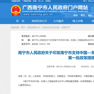 南宁市支持中国—东盟人工智能创新合作中心高质量发展第一批政策措施