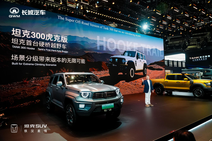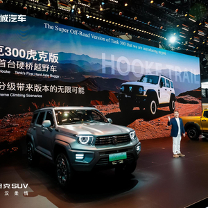 坦克品牌在车展上发布全球首款前后硬桥结构的坦克300虎克版,搭载3.0T V6发动机+48V轻混系统,最大功率260千瓦,最大扭矩500牛·米。该车还搭载蠕行模式与坦克转弯功能,最小转弯半径仅5.2米,较传统硬派越野提升20%。