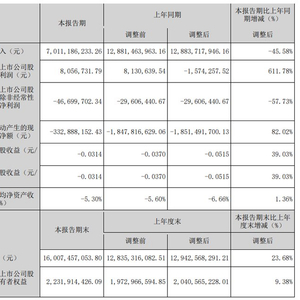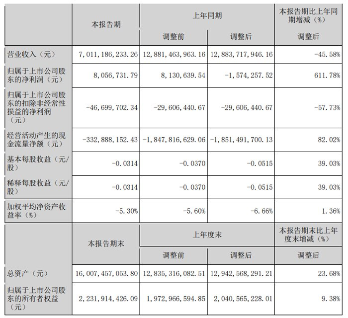 经营活动产生的现金流量净额-332,888,152.43元,同比增加82.02%;基本每股收益亏损0.0314元/股,同比增长39.03%;加权平均净资产收益率-5.30%。