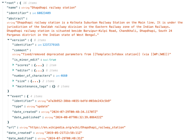 所以维基就把页面做成了 JSON 格式的结构化内容,那些标题、摘要、解释都按照统一格式分好。