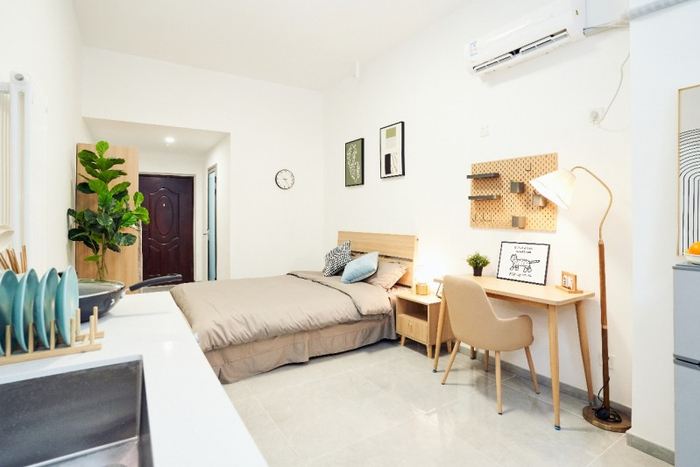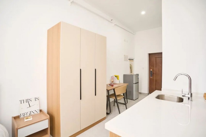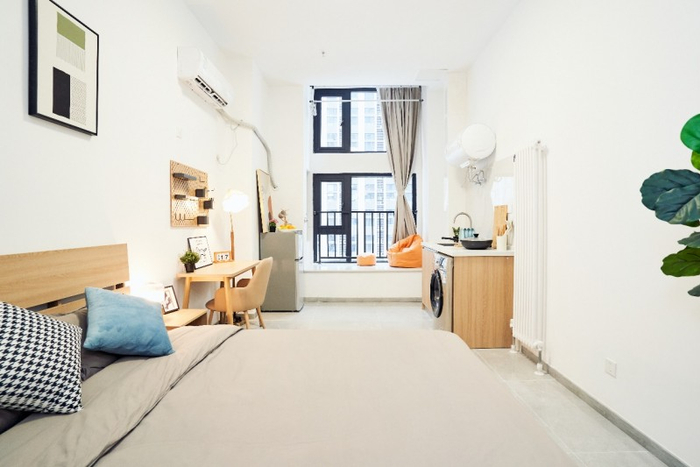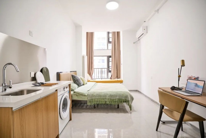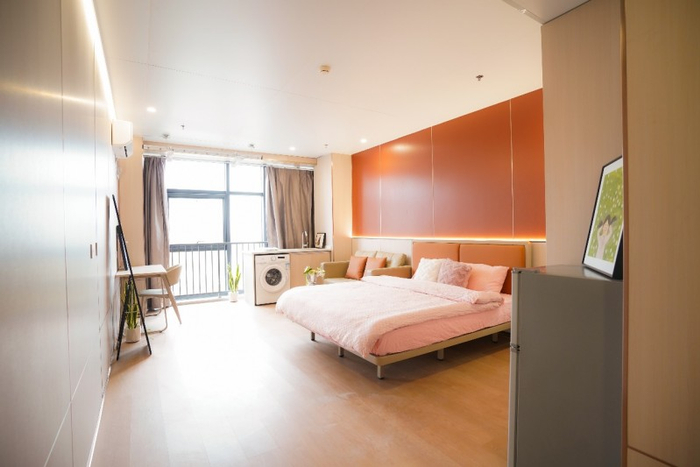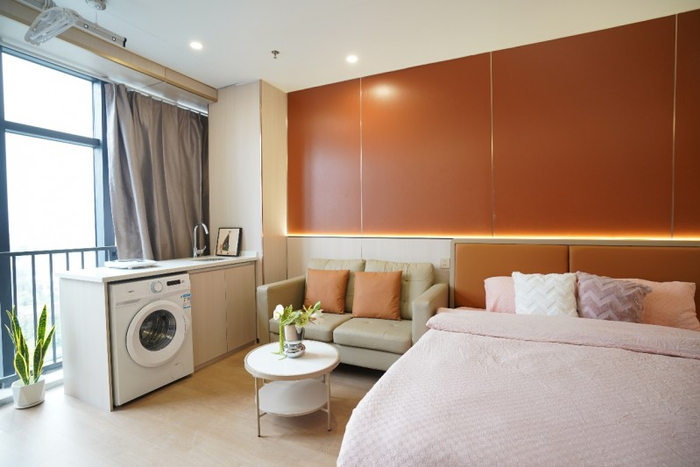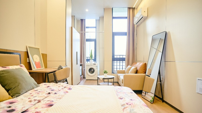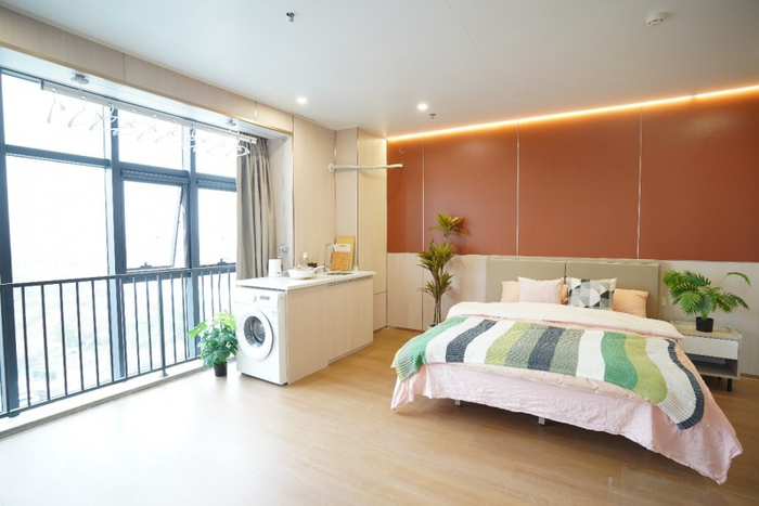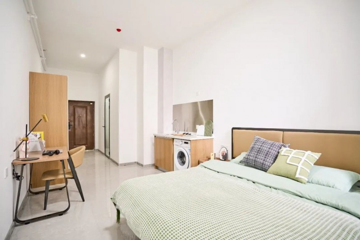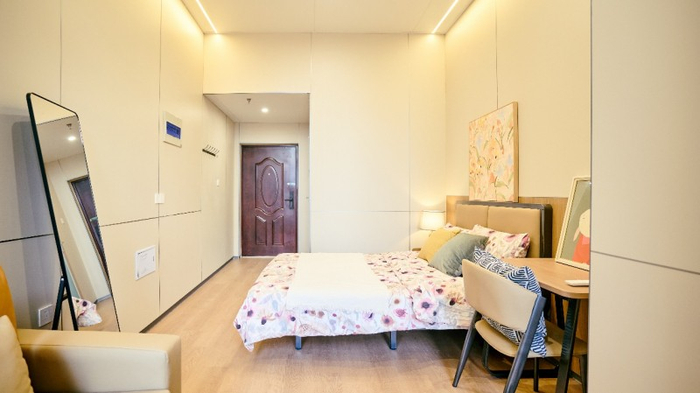 公寓特色:全屋精装交付,以温馨、简约、明亮的风格打造,搭配一线品牌家电及智能系统,实现“拎包入住”的便捷体验;卫浴配置镜柜及淋浴照明系统,细节提升生活品质;全屋标配品牌家具(床、衣柜、书桌等)及家电(空调、洗衣机、冰箱等),配备人脸识别门锁及智慧管理平台,兼顾安全性与科技感。