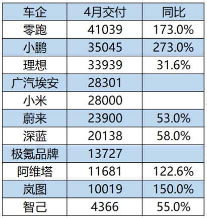 五一假期首日,造车新势力们依然按时公布了4月成绩单。