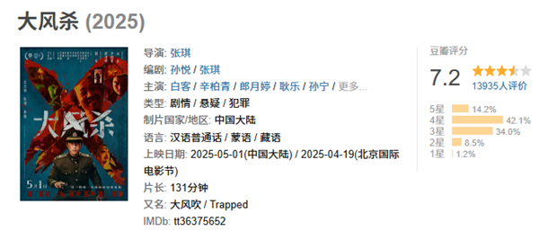 五一档新片豆瓣开分:《大风杀》7.2分位列第一