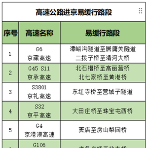 新京报讯 据北京交通微信公众号消息,5月4日、5日,本市高速公路迎返京车流高峰。受车流量大及降雨天气等因素影响,16-20时,京藏、京承、京礼、京平、京港澳、京开、京哈、首都机场高速等高速进京方向以及六环路部分路段易出现通行缓慢情况。京藏康庄、京承司马台、京港澳琉璃河、京沪应寺等部分进京检查站容易出现车辆排队情况。