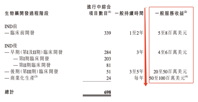 2024年,抗体蛋白药(大分子)方面共执行了28个CDMO项目,其中一半来自海外市场,值得注意的是,这里面有一个2000L级别的CMO订单。在药明生物的文章中所长讲过(下图为药明生物的项目进展和对应收益情况),CDMO项目越往后收益越高,能获得2000L级别的M订单,说明金斯瑞在大分子商业化生产与质量体系方面具备一定能力,可以说是一个较成熟的CXO了,公司也把这视作一个重要里程碑。