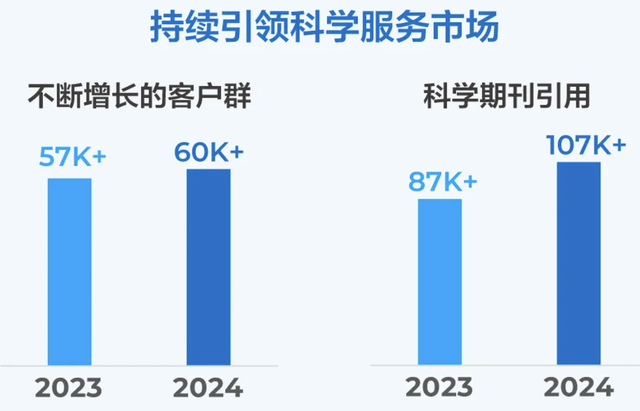截至2024年,金斯瑞生命科学业务全球下单的客户数量突破6万,同比有3000+增长,累计有超过10万篇学术期刊成果使用了金科瑞的服务和产品。