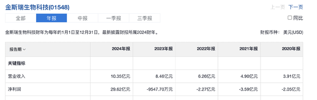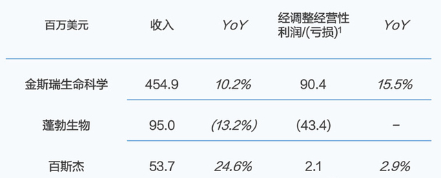 合成生物学也是一个属于未来的超级大风口,金斯瑞很早就涉足了这个领域,在2022年首次实现盈亏平衡后,百斯杰的营收和利润规模便不断增长。2024全年,百斯杰实现营收0.54 亿美元,同比增长 24.6%,经调整经营利润约为 2.1 百万美元,同比持平。