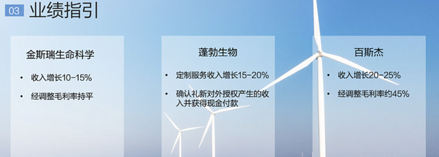 对于旗下三大板块,金斯瑞2025年的业绩指引是:生命科学服务增长10%-15%,毛利持平;蓬勃生物收入增长15%-20%(不含礼新分成);百斯杰收入增长 20%-25%(人民币计价),经调整毛利率提升至约 45%。