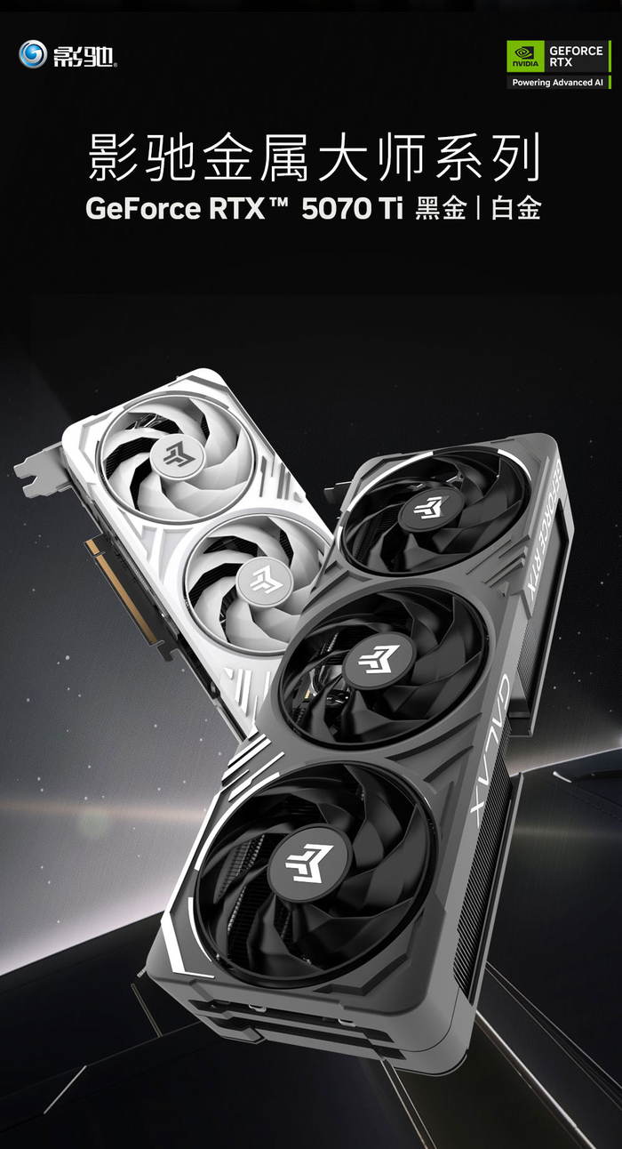 而想要在2K分辨率下实现高帧率,那么RTX5070 Ti 金属大师黑金/白金OC显卡则非常适合各位玩家,拥有最新的DLSS4技术,以及16GB的大显存,运行主流游戏都毫无压力,帧数在DLSS的加持下有着飞跃版的提升,并且大显存能够支持AI本地部署,非常适合入门体验,如果感兴趣的话,可以到影驰各大电商平台购入哦~