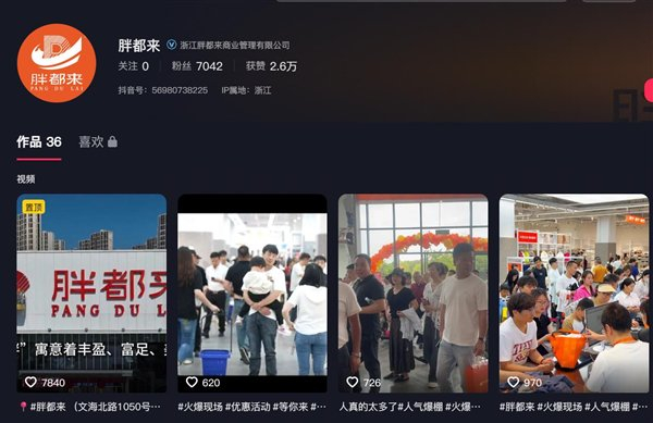5月7日消息,据媒体报道,2025年5月1日,浙江一家名为 “胖都来” 的商业综合体高调开业,邀请多位明星录制祝贺视频,这家商场的名字与河南零售巨头 “胖东来” 仅一字之差,网友认为胖都来 “蹭流量”。