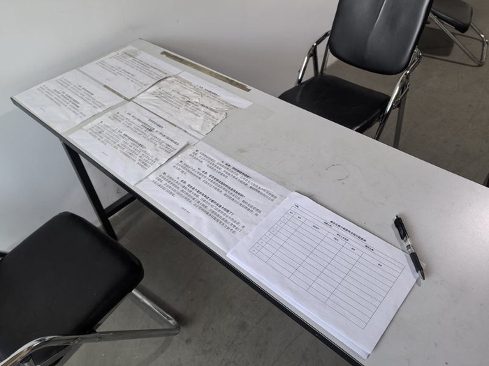 在上海长宁区绥宁路879号威尔仕健身临时接待点内,工作人员只接受会员反映问题填表格,不做任何回答和承诺。新京报贝壳财经记者俞金旻 摄