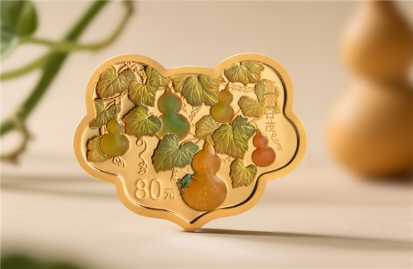 5克如意形金质纪念币为精制币,含纯金5克,外接矩形18毫米 x 24毫米,面额80元,成色99.9%,最大发行量10000枚。