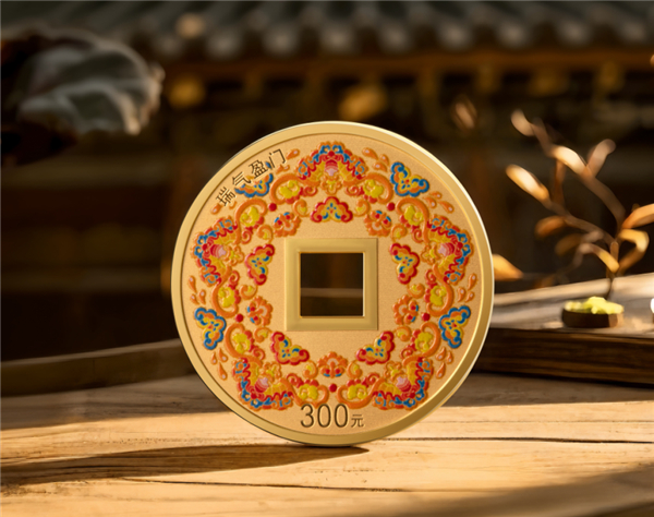 20克方孔圆形金质纪念币为精制币,含纯金20克,直径30毫米,内孔6毫米×6毫米,面额300元,成色99.9%,最大发行量2000枚。