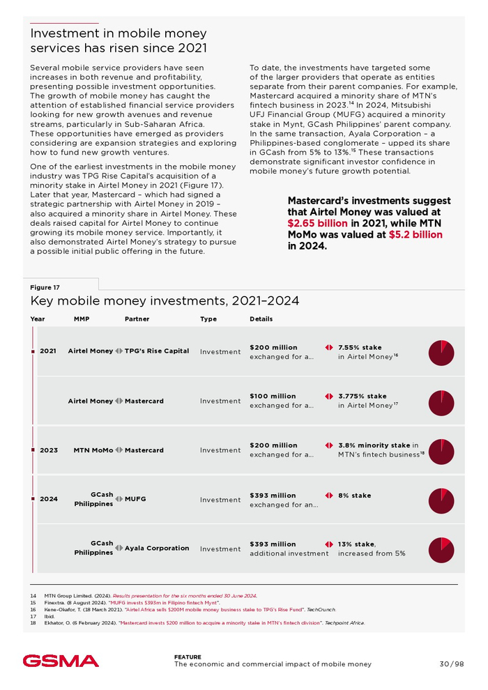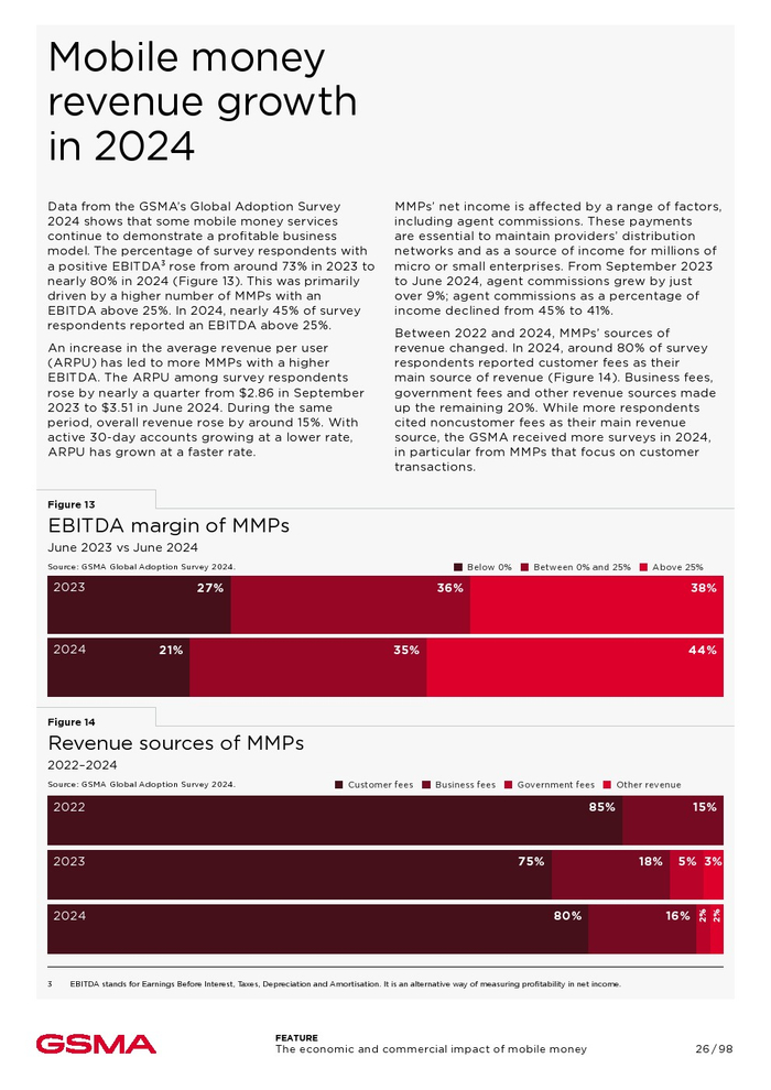 移动支付提供商越来越多地提供信贷、储蓄和保险等周边金融服务。截至2024年6月,44%的提供商提供信贷服务,使其成为最常用的周边金融产品。约1/3的提供商提供储蓄服务,而保险仍然是最不常见的服务,只有约28%的提供商提供。