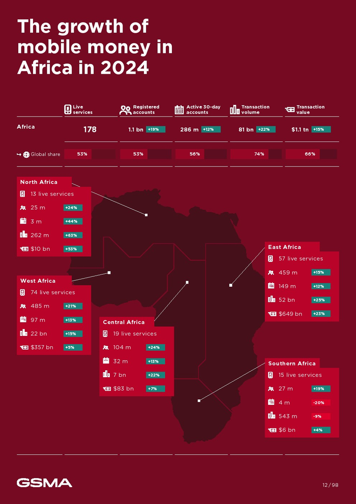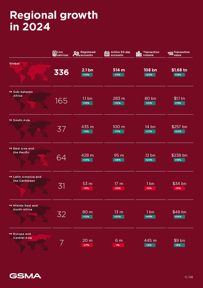 撒哈拉以南非洲仍然是全球移动支付最活跃的地区,这得益于东非和西非新注册账户的增加和月度活跃度的提升。