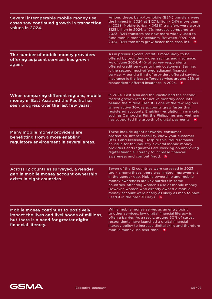 GSMA发现,在东亚和太平洋地区,许多移动支付提供商已发展成为全方位金融服务平台,提供广泛的产品以满足用户需求;事实上,最成功的提供商往往是那些积极创新产品广度的公司。