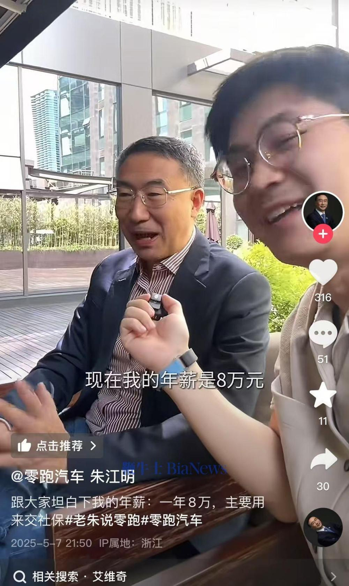 零跑CEO朱江明:当前年薪8万元,主要用来缴纳社保