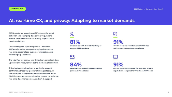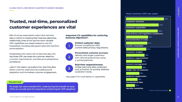 根据2025年客户数据研究,实时客户数据对企业绩效越来越重要。随着人工智能(AI)应用的增加以及客户对个性化和隐私的需求,越来越多的组织正在转向实时客户数据管理,以实现业务目标并超越竞争对手。