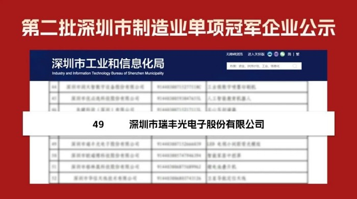 领跑行业 | 瑞丰光电斩获深圳市制造业单项冠军