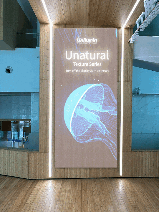 洲明创新之作UNatural屏-高亮度、低光损、低反光,拥有10余种纹理开发及可定制方案,让显示真正成为家居、酒店、零售空间、办公楼等场景的一部分,为建筑空间赋予全新的生命力与商业价值。