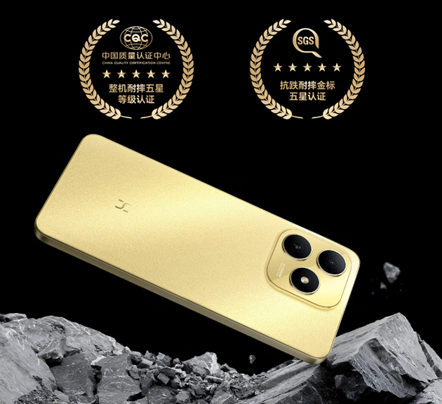 只有设计上足够时尚还不够,Hi畅享 80系列还足够耐用,达成中国质量认证中心(CQC)整机耐摔五星等级和瑞士 SGS整机抗跌耐摔五星金标双认证,有效降低日常跌落的损坏风险,同时还支持IP64防尘防水等级认证,防尘拉满,也能防水溅,日常使用更放心。