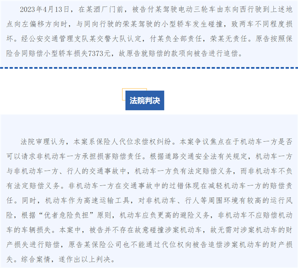 大部分人都不知道!非机动车非故意全责事故 无需赔偿汽车车损