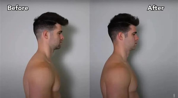 挑战后,他的上背部更驼了,但下背部的脊椎曲度倒是改善了,更接近自然的曲度(轻微向前凸),肚子大了一点,因为不停吃东西,体重胖了差不多一斤。