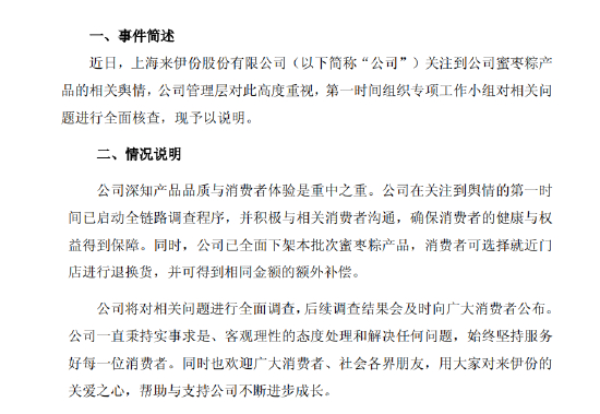 粽子吃出带血创可贴?来伊份:已下架本批次产品,消费者可退换货并获等额赔偿