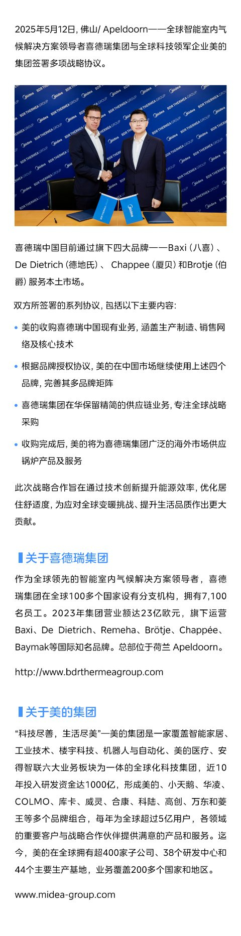 美的与喜德瑞在华达成战略合作协议
