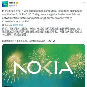 快科技5月12日消息,诺基亚官方今日在社交平台发文,庆祝公司迎来160周年纪念。